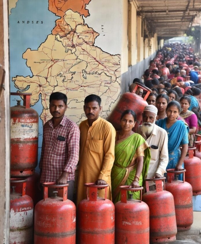 पश्चिम एशिया में ईरान-इजरायल-अमेरिका संबंधित संघर्ष के कारण स्ट्रेट ऑफ होर्मुज में जहाजों की आवाजाही प्रभावित हुई है। भारत LPG का लगभग 60% आयात गल्फ देशों से करता है, जिससे आयात में अस्थायी बाधा आई। इससे कुछ इलाकों (जैसे लखनऊ सहित उत्तर प्रदेश के कई हिस्सों) में पैनिक बुकिंग, होर्डिंग और लंबी कतारें लग गईं। लेकिन सरकारी आंकड़ों के अनुसार, यह सप्लाई फेलियर नहीं, बल्कि डिमांड डिस्टॉर्शन (घबराहट से अतिरिक्त बुकिंग) है।